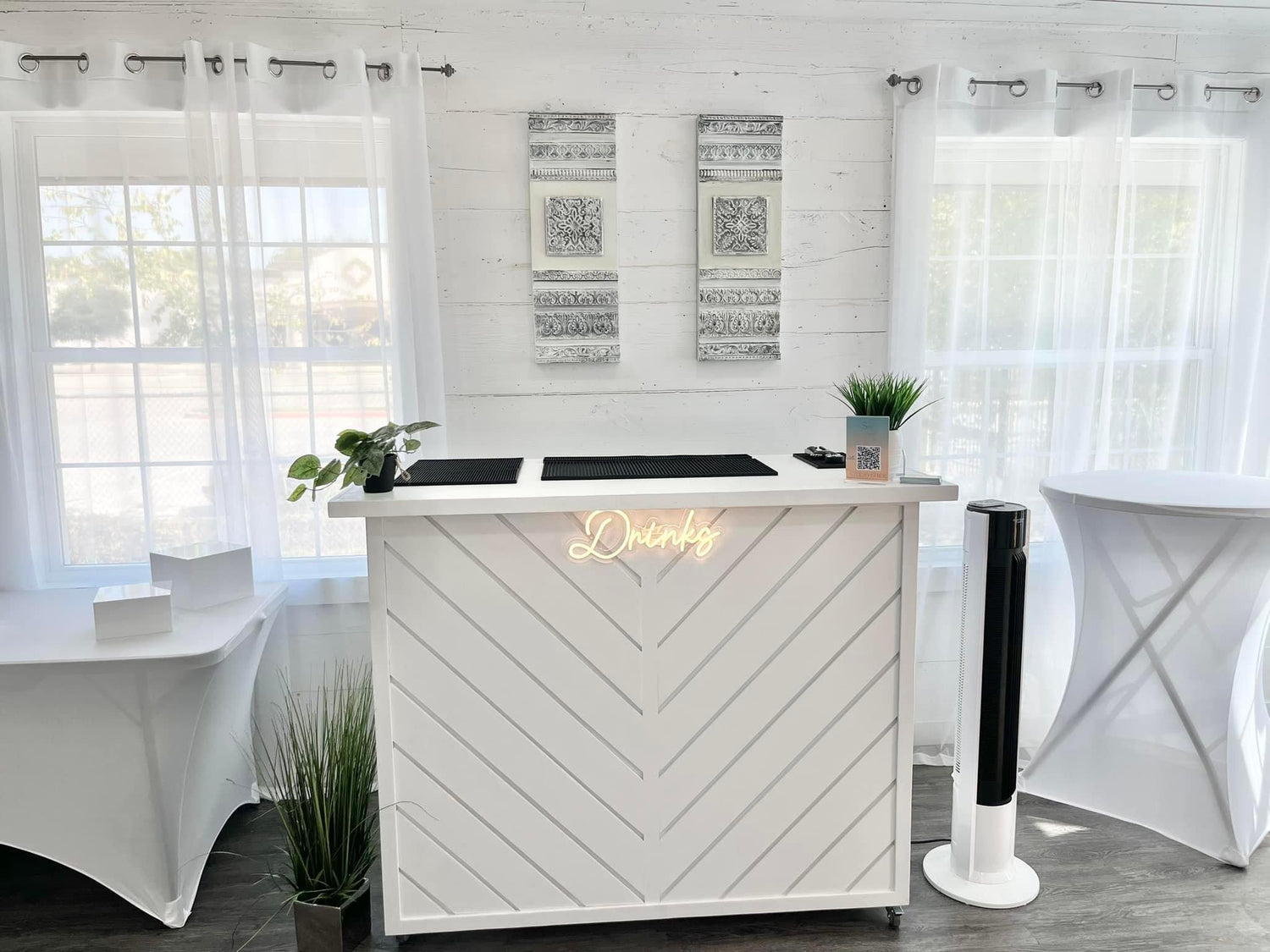 Prices and availability are subject to change. Photobooth, 360 Booth, Vintage Furniture Rentals, Mobile Bar Carts and Treat Stations, Stages, Champagne and Bubbly Walls. Glow Kits, LED Lights, Candle Kits, Paint N Pour Kits, Linen, Decor and more. Many of our popular items are featured below. Inquire about others.